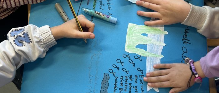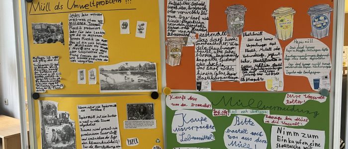 Mehrere Gruppen gestalteten anschauliche Plakate rund um das Thema Müll. Sie informierten über Plastikmüll im Meer, erklärten, wie Müll richtig getrennt wird, und zeigten Alternativen zur Müllvermeidung, zum Beispiel durch Wiederverwenden und Upcycling. Die Plakate machten deutlich, wie wichtig es ist, bewusst mit unseren Ressourcen umzugehen.