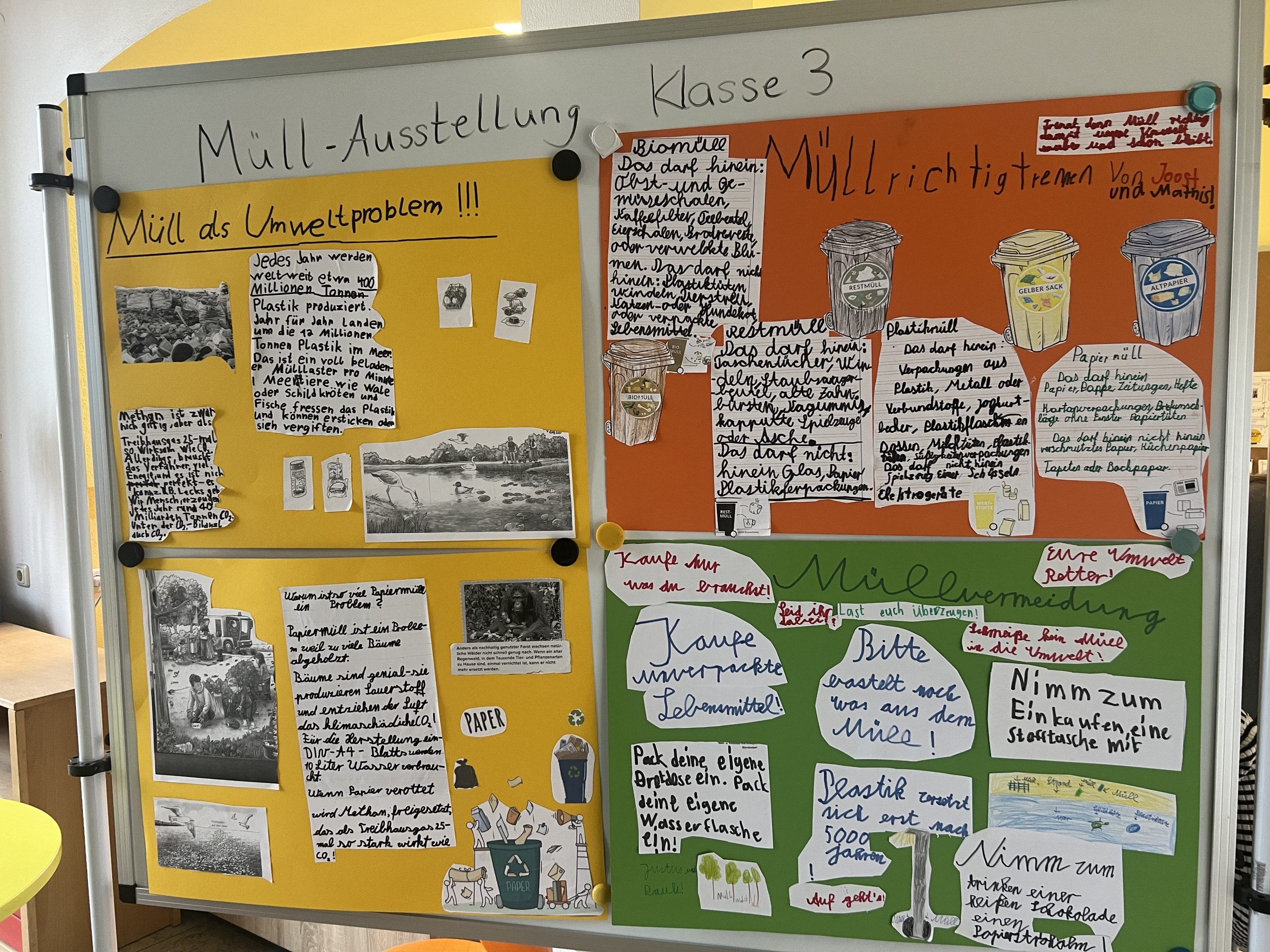 In den letzten Wochen haben sich die dritten Klassen unserer Grundschule intensiv mit dem wichtigen Thema Müll und Umweltschutz beschäftigt. Dabei durften die Kinder selbstständig eigene Projektideen entwickeln und diese gemeinsam in Gruppen umsetzen. Mit viel Kreativität, Teamarbeit und Engagement sind dabei tolle Ergebnisse entstanden.