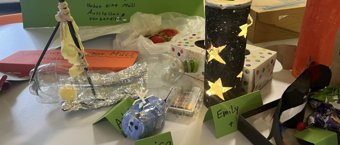 Ganz praktisch ging eine weitere Gruppe vor: Sie sammelte Müll auf dem Schulhof und auf dem Bolzplatz und setzte damit ein sichtbares Zeichen für eine saubere Umgebung. Eine andere Gruppe sammelte eine Woche lang den Plastikmüll einer Klasse und stellte eindrucksvoll dar, wie viel Plastikmüll dabei tatsächlich zusammenkommt.
