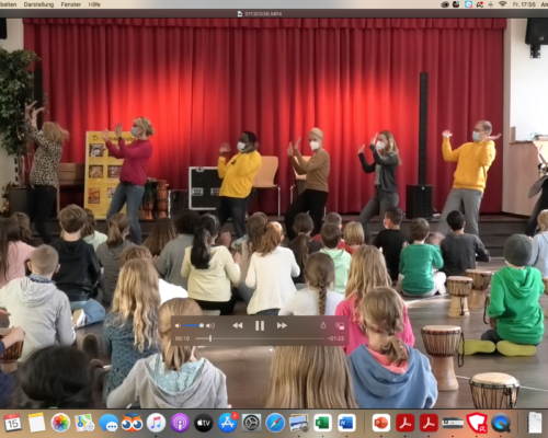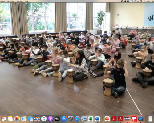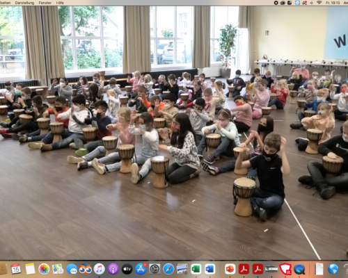 Rhythmische Übungen, Tanz und natürlich das Trommeln gehören für die Kinder der Wallschule in dieser Woche zum Schultag dazu.